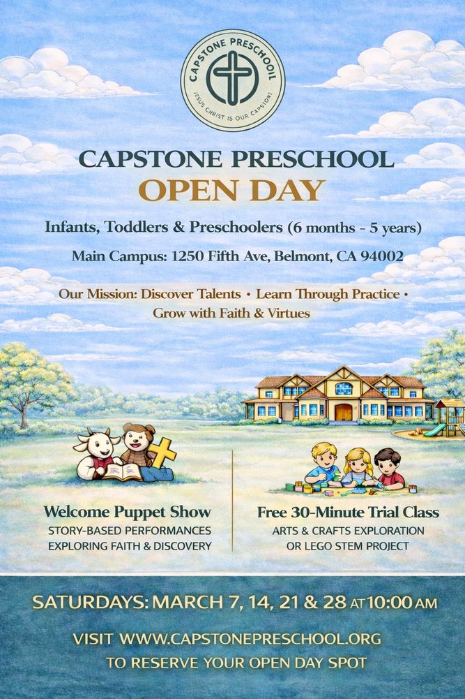 Capstone Preschool is a faith‑based program that emphasizes kindness, respect, and patience character alongside early childhood education. Families of all backgrounds are welcome, and our values are shared in age‑appropriate ways through daily learning and play.